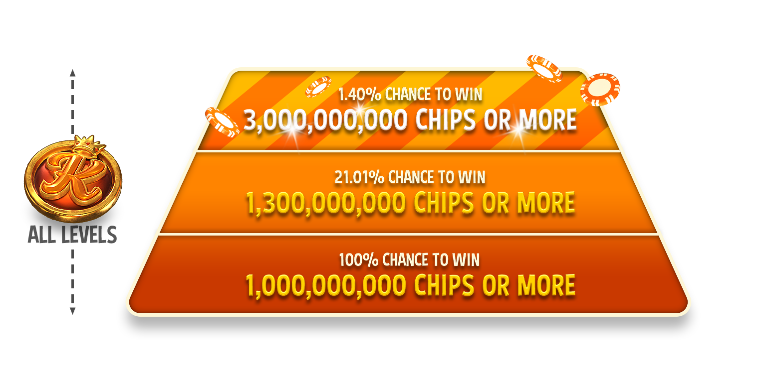 Dieser Spin ist einer der Spins mit den höchsten Gewinnen und ist nur für begrenzte Zeit erhältlich. Der Mindestgewinn beträgt 1 MILLIARDE CHIPS und der Jackpot 1,7 BILLIONEN CHIPS.