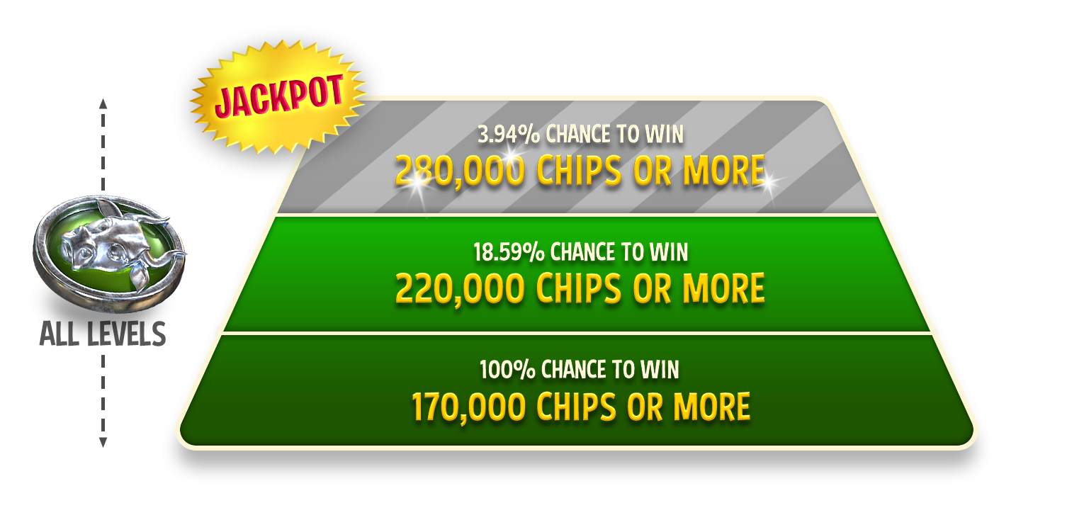 The minimum win for this Spin is 170K CHIPS and the jackpot is 50 MILLION CHIPS.