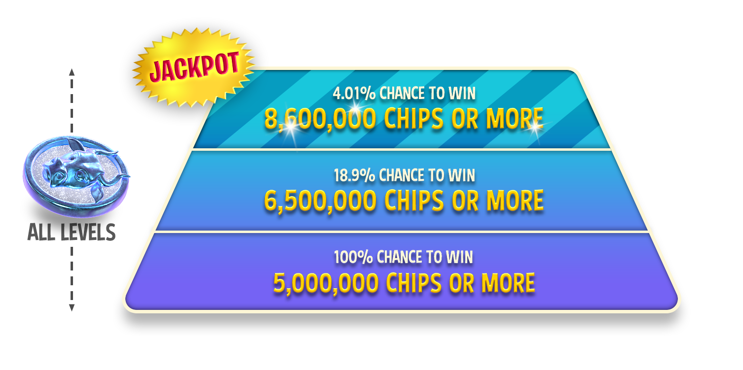 The minimum win for this Spin is 5M CHIPS and the jackpot is 1 BILLION CHIPS.