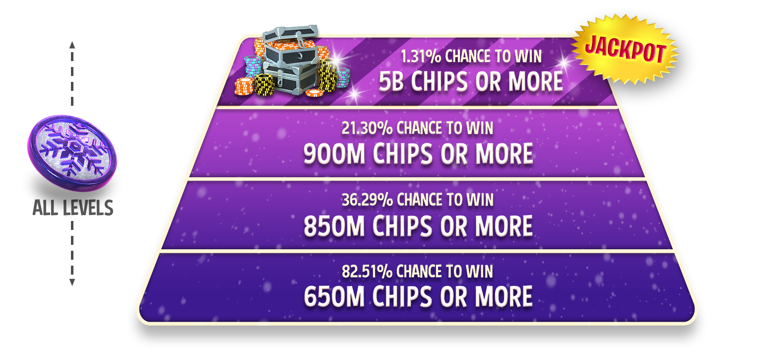 Este Spin es uno de los spins de mayor valor y solo está disponible durante un tiempo limitado. El premio mínimo es de 400 MILLONES DE FICHAS y el jackpot es de 500.000 MILLONES DE FICHAS.