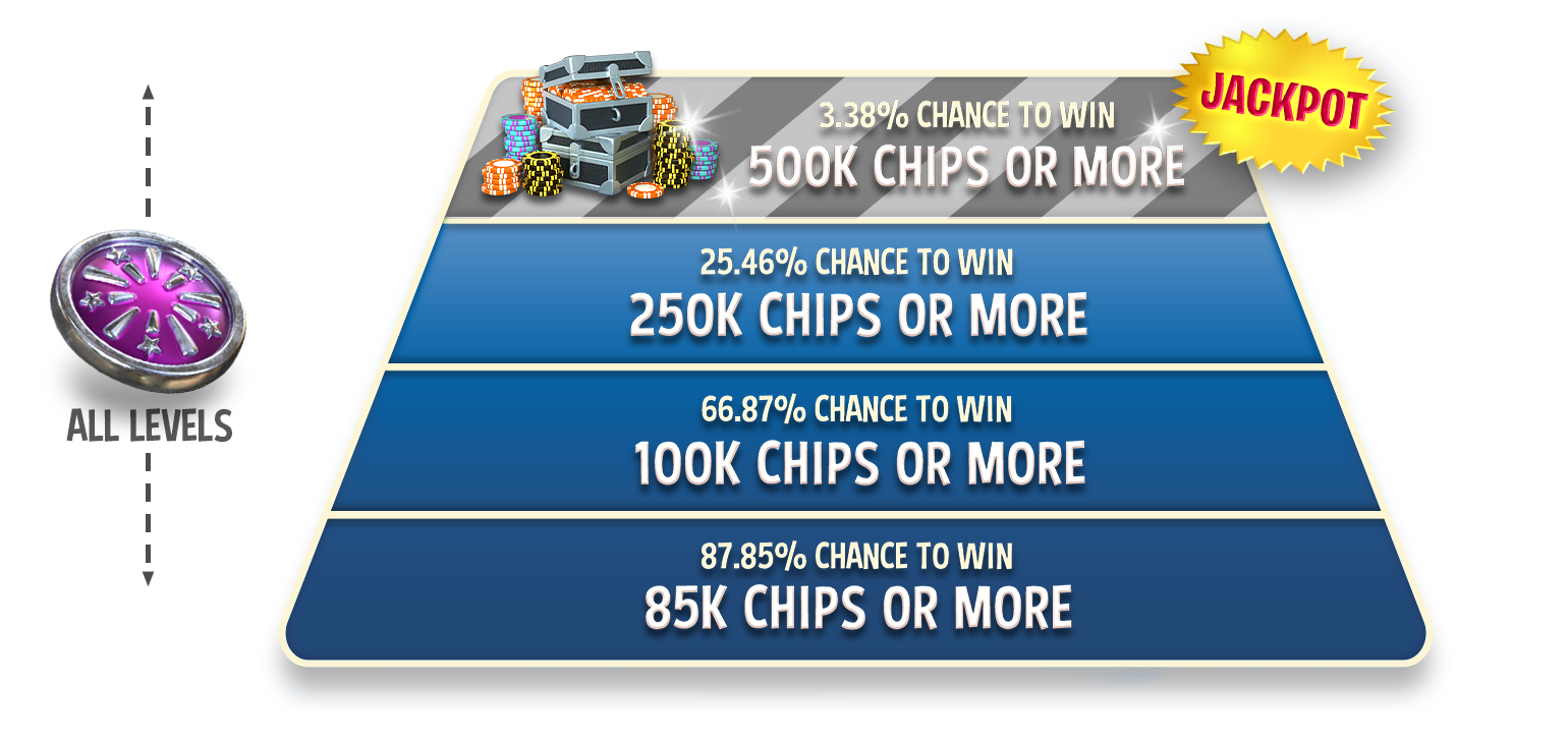 Ce Spin offre l'un des gains les plus élevés et n'est disponible que pour une durée limitée. Le gain minimum pour ce Spin est 400 MILLIONS de JETONS et le jackpot est de 500 MILLIARDS de JETONS.