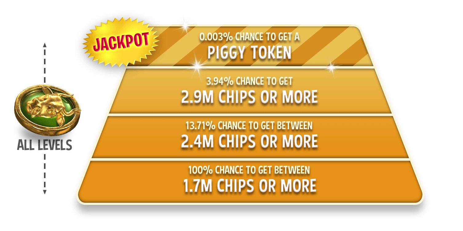 Le gain minimum pour ce Spin est 1.7M de JETONS et le jackpot est de 100 MILLIONS de JETONS.