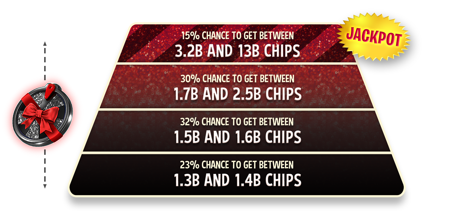 Un Token Jackpot Wheel è un oggetto presente nel gioco che ti permette di girare una specifica Jackpot Wheel per avere la possibilità di vincere fiches o altri preziosi premi all'interno del gioco. Ogni giro è completamente casuale, il che significa che non si sa mai quale premio si otterrà fino a quando la ruota si ferma.