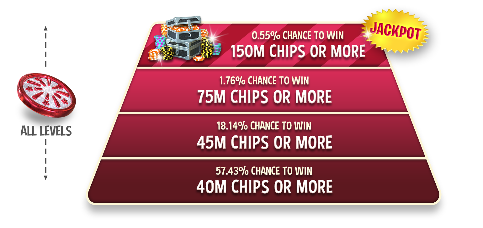 Это один из самых ценных спинов в игре, доступный только во время проведения специальных акций. Минимальный приз при прокрутке этого спина составляет 120 МИЛЛИОНОВ ФИШЕК, а джекпот достигает 75 МИЛЛИАРДОВ.