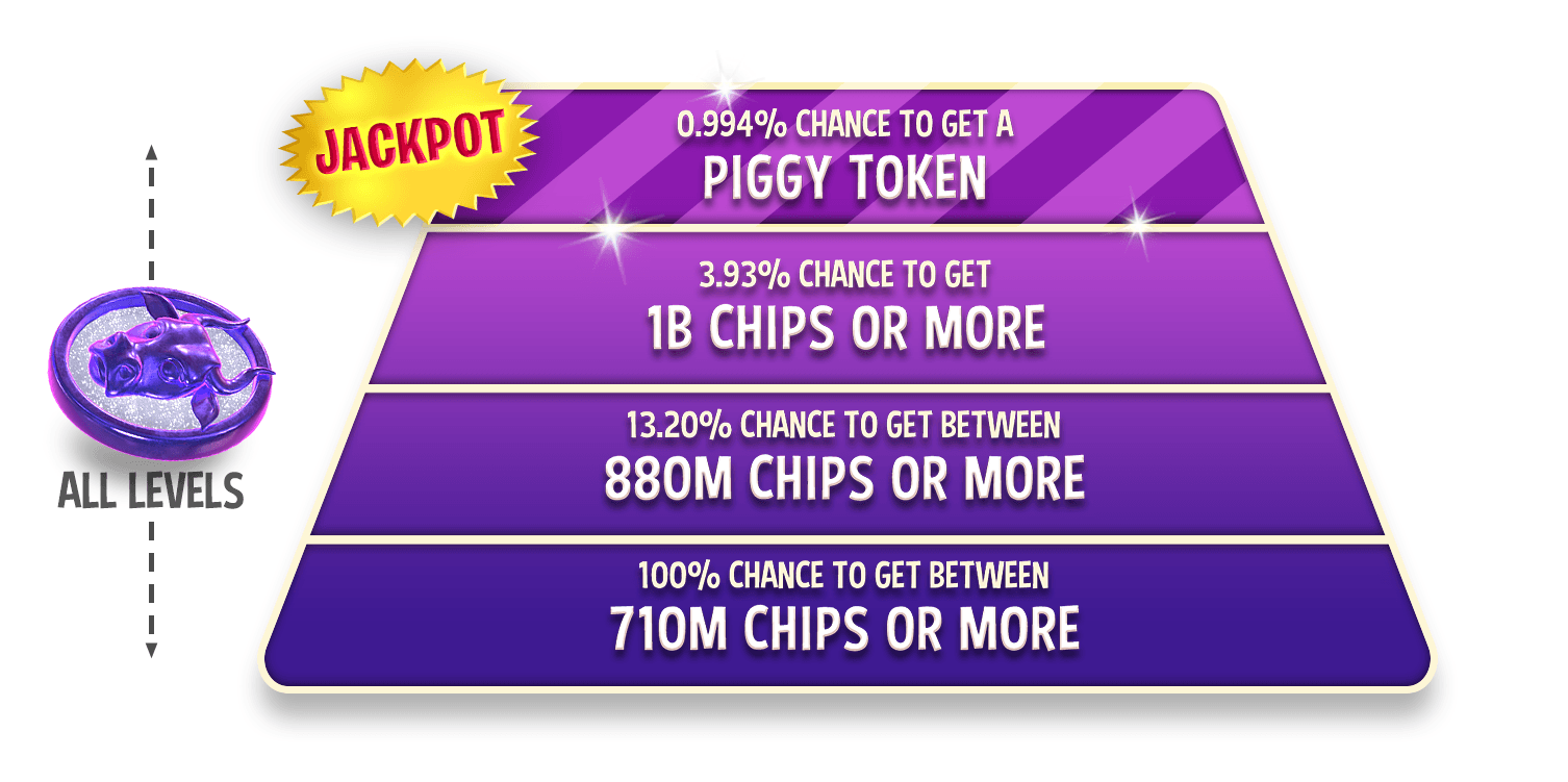 Here is a list of the chip prizes you can win: 710M, 740M, 780M, 850M, 880M, 920M, 990M, 1B, 1.1B, 1.2B, 1.3B, 2.1B, 7.1B, 14B, 35B, 71B, 140B, 350B, 500B